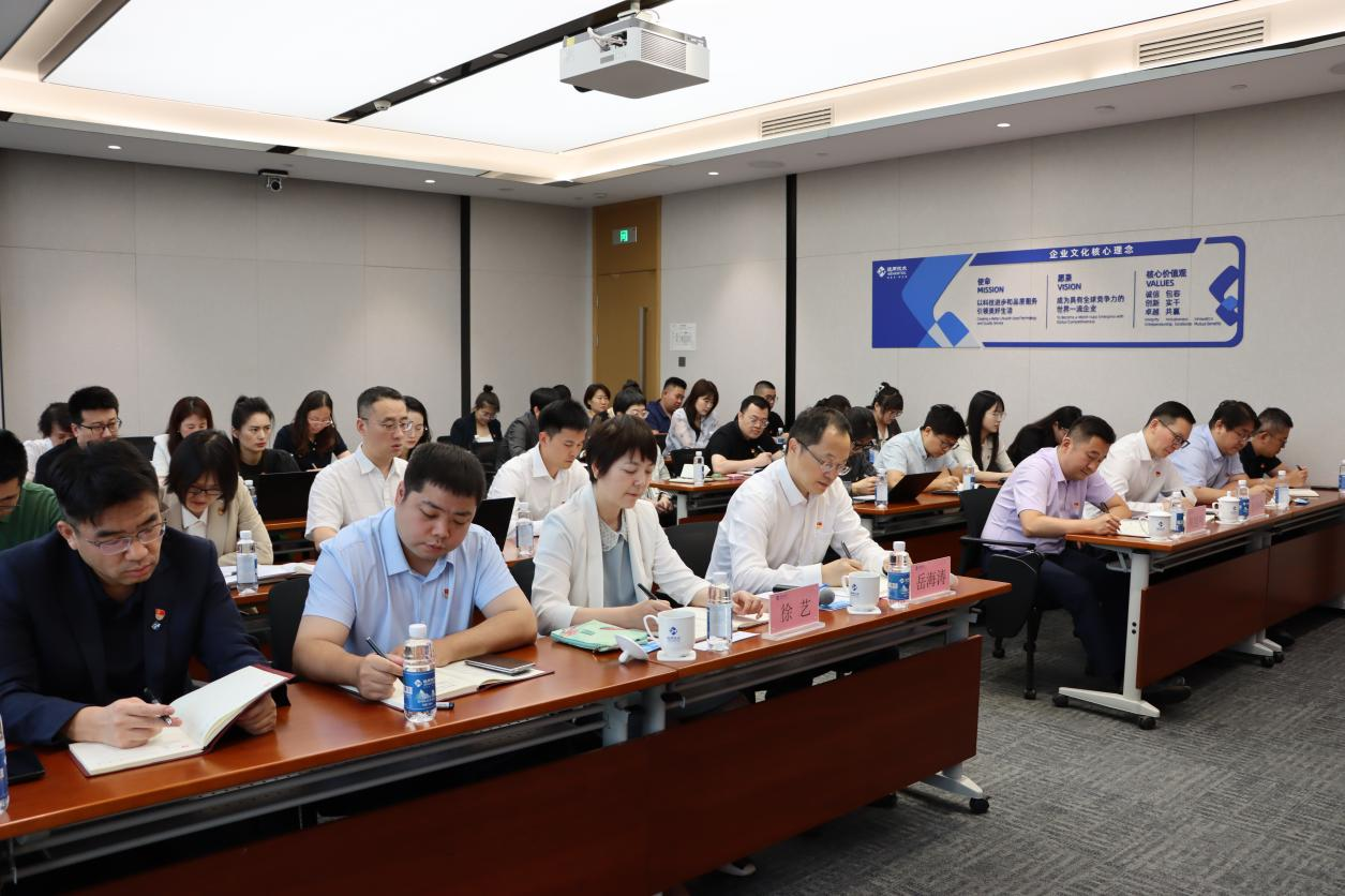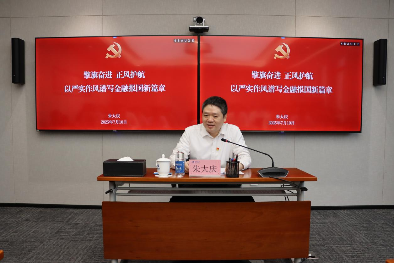 7月10日上午,通用技术集团总会计师、党组成员、财务公司董事长朱大庆以《擎旗奋进 正风护航 以严实作风谱写金融报国新篇章》为主题,在财务公司讲授深入贯彻中央八项规定精神学习教育专题党课。朱大庆同志在党课中强调,财务公司全体党员干部要持续深入学习贯彻习近平总书记关于加强党的作风建设的重要论述精神,全面把握中央八项规定精神的内涵和要求,切实把学习成效转化为坚定理想信念、锤炼党性的高度自觉,转化为做好本职工作、推动企业事业发展的生动实践;要深刻认识到财务公司作为集团内部金融服务平台的重要性,切实增强服务集团主责主业的使命感、责任感、紧迫感;要坚持严实作风,筑牢金融业务安全防线,强化穿透式监管,全力以赴服务好集团科技创新与产业创新,以作风建设新成效为集团培育新质生产力、加快建设世界一流企业贡献更大力量!财务公司全体党员参加党课学习。