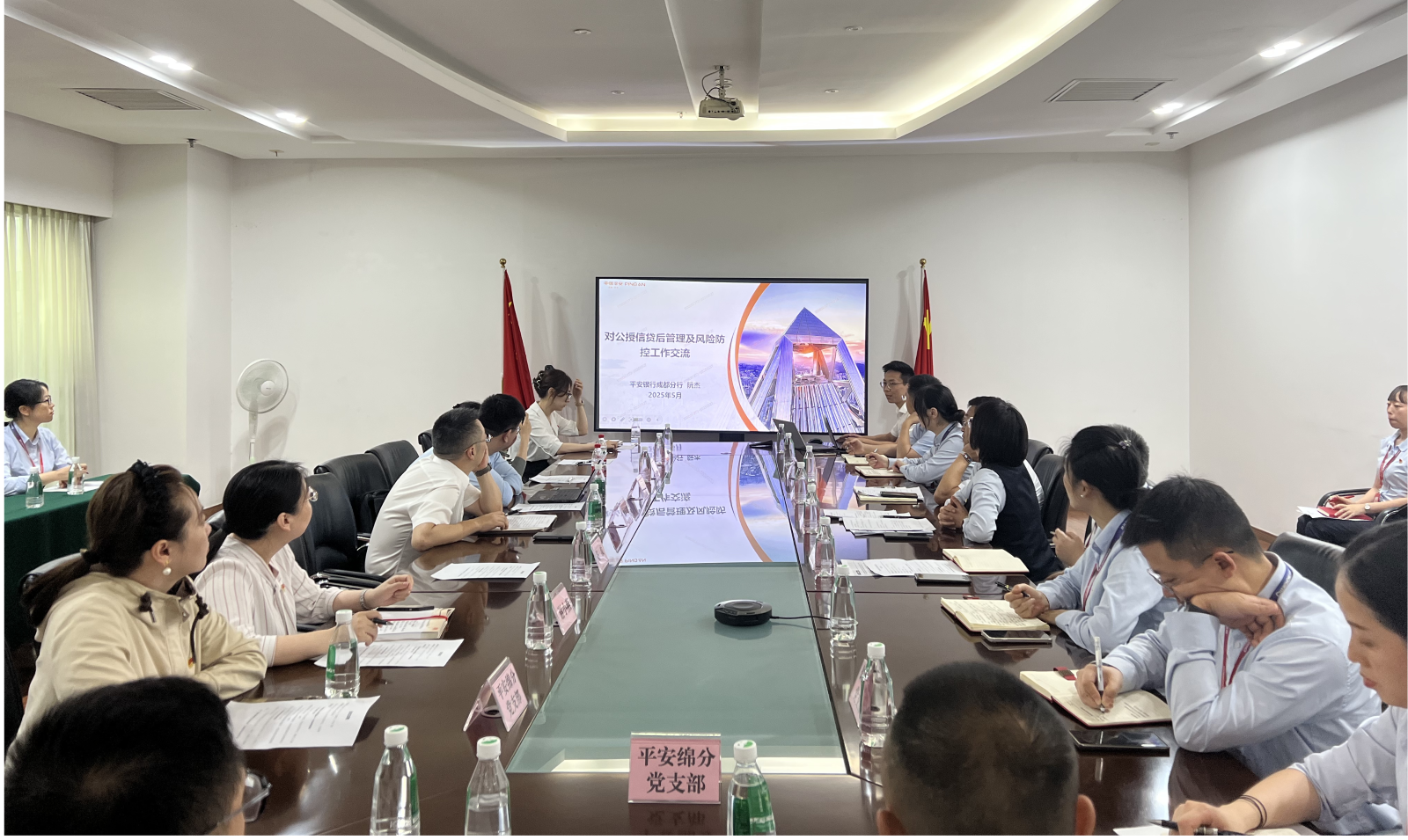 活动还特别邀请了平安银行成都分行风险经理开展专题讲座,以对公授信贷后管理及风险防控工作经验交流,为财务公司健全风险防控体系、提升员工风险防控能力筑牢了经验根基,切实将党建活动与业务提升紧密结合。此外,双方还围绕党建工作的开展情况、未来的合作方向等内容进行了深入交流。本次党建共建活动,既增强了财务公司与平安银行绵阳分行之间的友谊,又搭建了一个优势互补、经验互鉴的交流平台,有效提升了党组织的凝聚力和战斗力。双方要以此次共建为契机,持续加强沟通协作,不断探索合作的新方法、新路径,为金融服务实体经济发展注入更为强劲的动力,以实际行动践行党建引领发展的使命与担当。