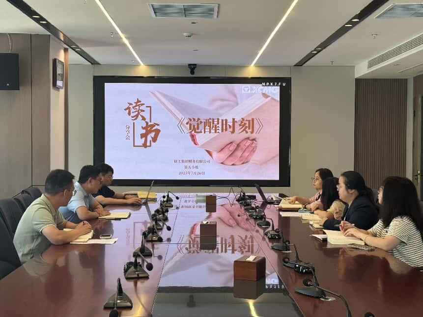 为深入推进学习型党组织建设,创新全员学习教育形式,全球财资中心第二党支部于7月26日举办了一场别开生面的“沉浸式”读书分享活动。本次活动聚焦经典作品集《觉醒时刻》,引导员工走近百年前先贤的觉醒思想,汲取精神力量,并结合时代发展与岗位实践,激发思辨精神与担当意识。党支部青年委员、财务公司副总经理张康同志担任月度领读人并全程参与指导,工作组成员吕金泽、袁子淳及来自不同部门的六名员工共同参与了深度分享交流。