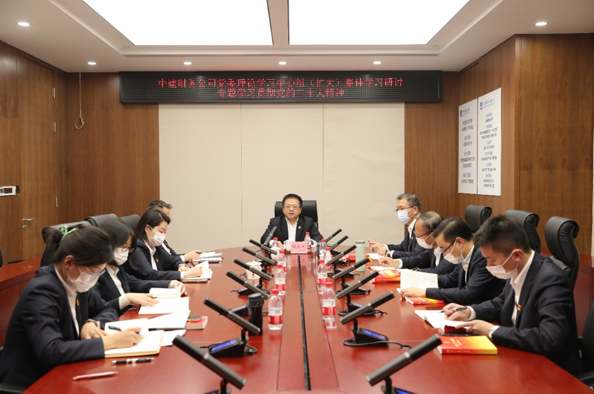 11月17日,中建财务公司党委理论中心组(扩大)专题学习研讨党的二十大精神,党委书记、董事