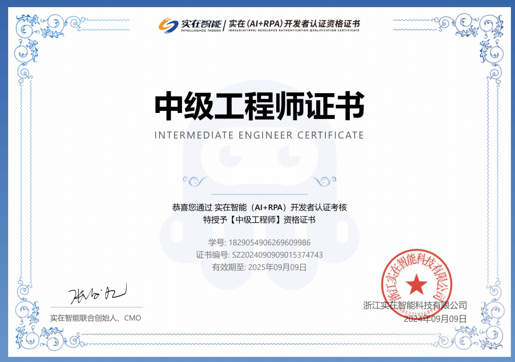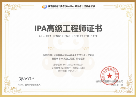 RPA工程师证书。其中初级、中级各占七席,进一步壮大了公司RPA技术团队。截至目前,公司已有RPA高级