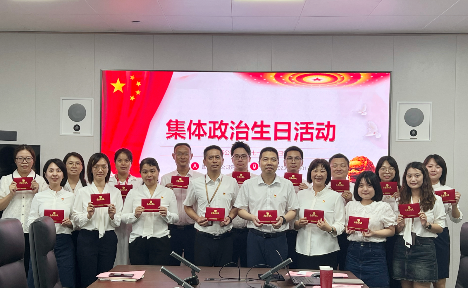 活动中,公司党支部班子成员为公司党员发放“政治生日”贺卡,勉励大家要时刻牢记党员身份,以党员标准