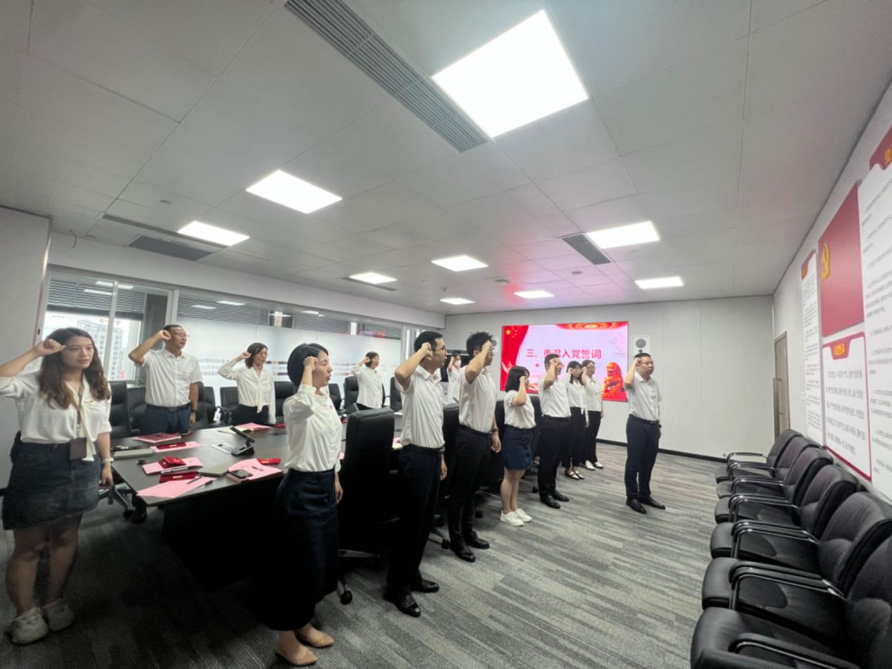 “我志愿加入中国共产党,拥护党的纲领......永不叛党。”在党支部书记曾源的领誓下,公司全体党员在党旗前