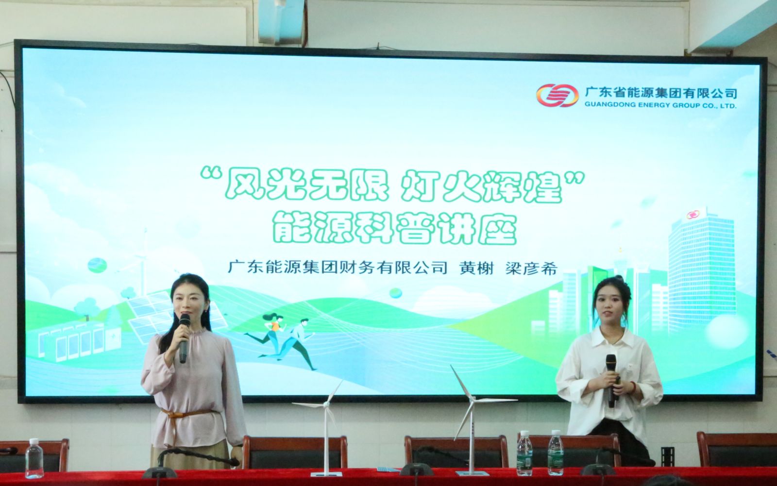 在能源知识普及讲座现场,财务公司团青讲师带着风力发电机模型及光伏板组件走进课堂,以实物演示结合通俗讲解,向学生们生动解读风力发电、太阳能发电的原理,让抽象的能源科学变得直观可感,激发了学生对清洁能源的兴趣与探索欲。