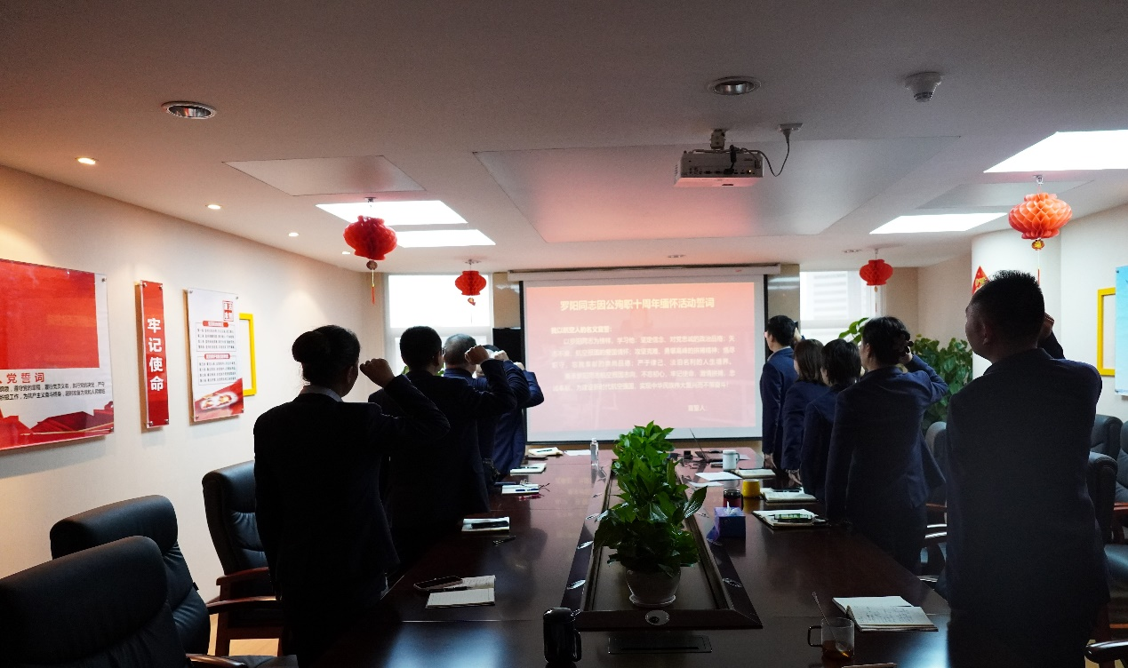 最后,全体人员以航空人的名义庄严宣誓:“秉承罗阳同志航空报国志向,不忘初心,牢记使命,激