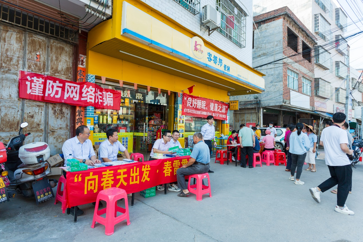 咽喉头颈外科中心、横陂镇卫生院在横陂镇开展“党建引领反诈宣传进企下乡”“党建引领医疗服务进企下乡”等志
