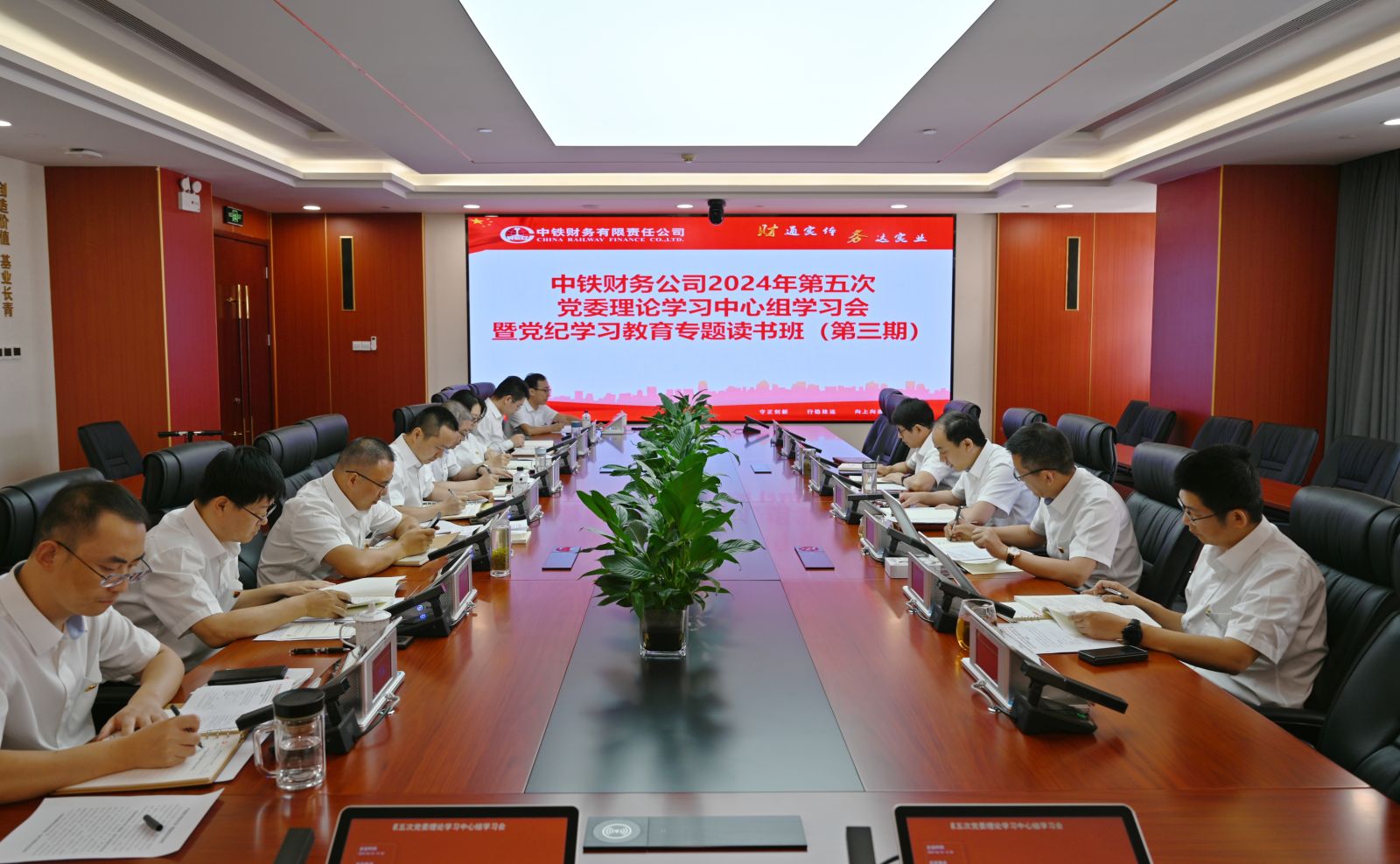 6月24日,中铁财务公司党委召开2024年第五次理论学习中心组学习会暨党纪学习教育专题读书班(第