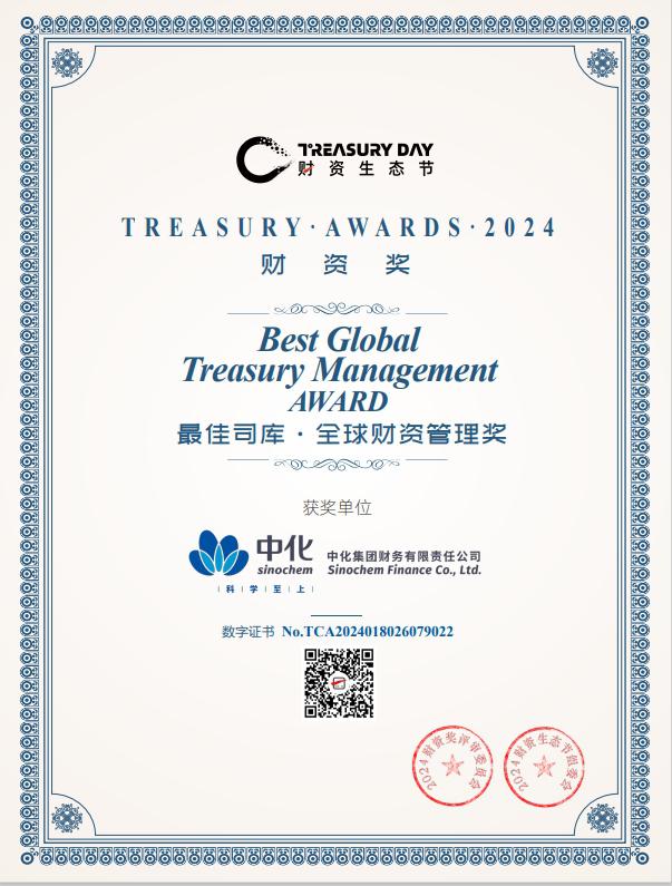 11月7日,中化财务公司在第五届财资生态节暨第十二届中国财资年会中,荣获“最佳司库·全球财资管理
