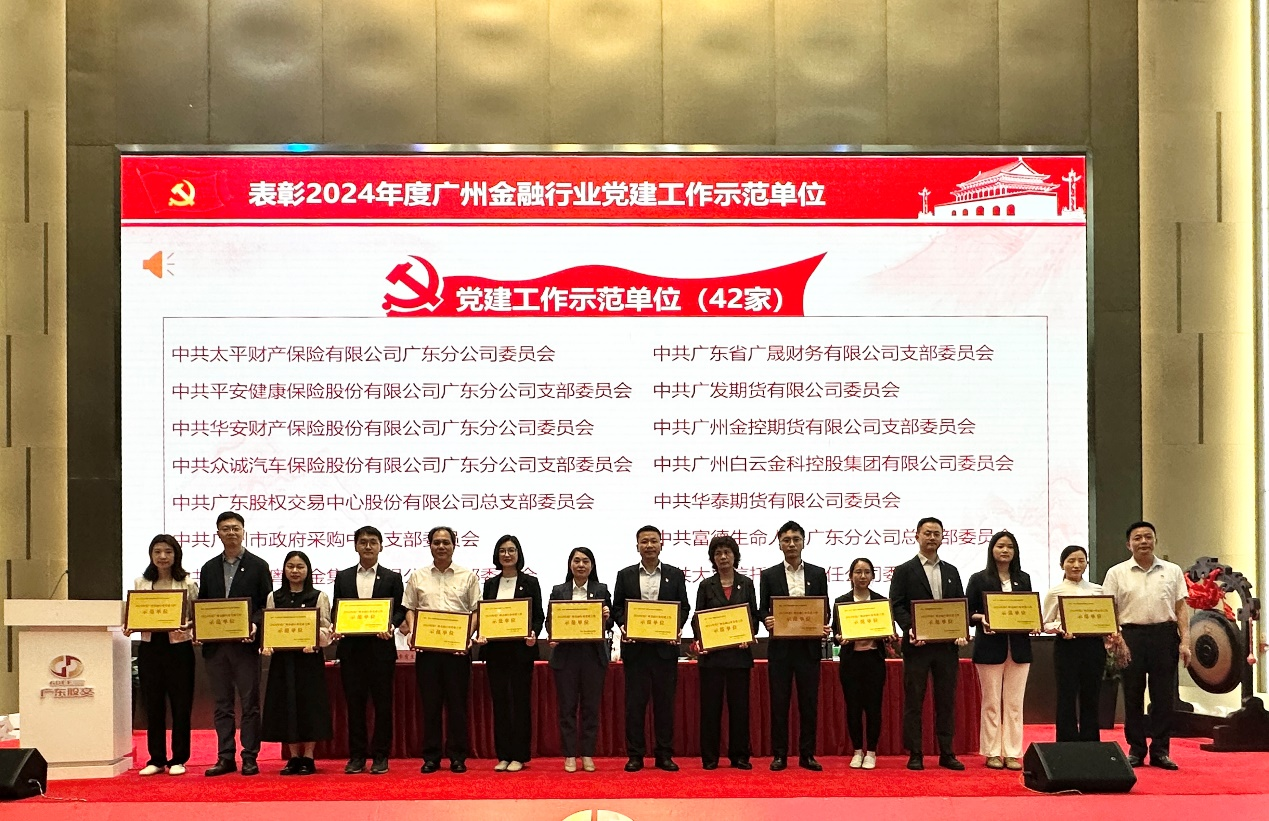 2025年4月25日,广州市金融行业2025年党建工作会议在广东股权交易中心召开。会上,广晟财务公司党支部被广州市金融行业党委授予“2024年度广州金融行业党建工作示范单位”称号,是唯一获奖的企业集团财务公司。