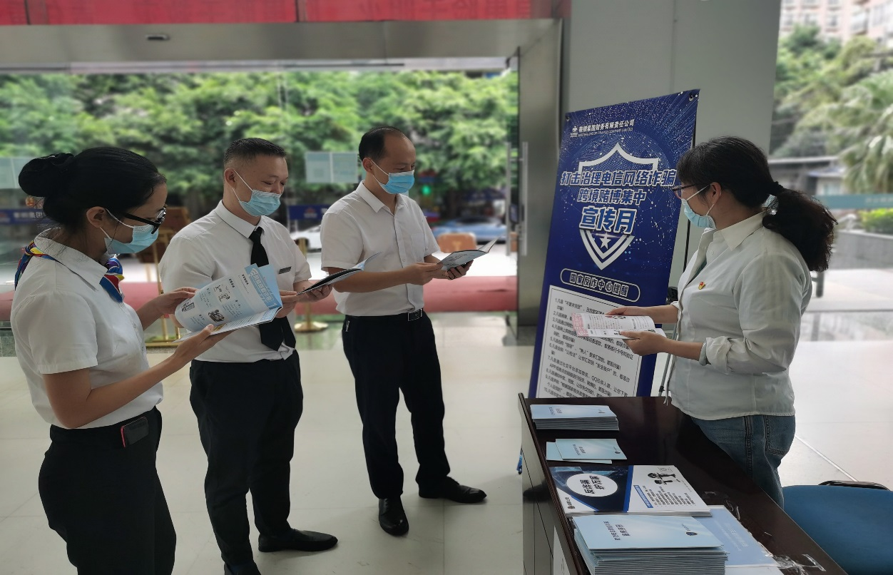 9月18日,财务公司四川分公司组织党员开展“我为群众办实事”活动------在成都金贸大厦大厅设立宣传点,义务向广大职工群众宣传“反诈拒赌,安全支付”等相关知识。
