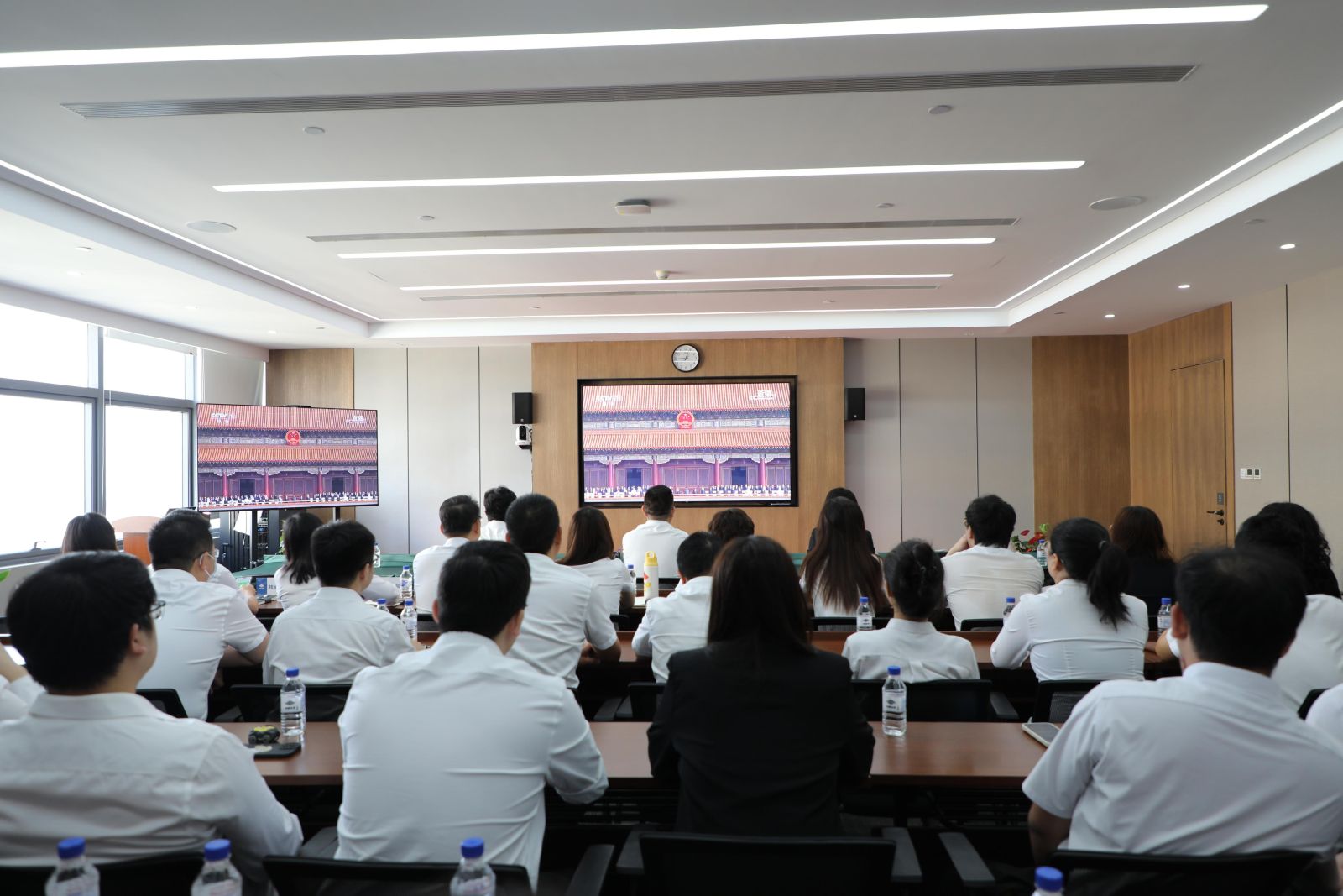 9月3日,纪念中国人民抗日战争暨世界反法西斯战争胜利80周年纪念大会在北京天安门广场隆重举行,中国化学财务公司组织干部职工集中观看直播,共同见证这一庄严时刻。