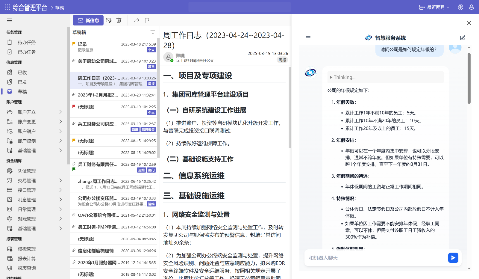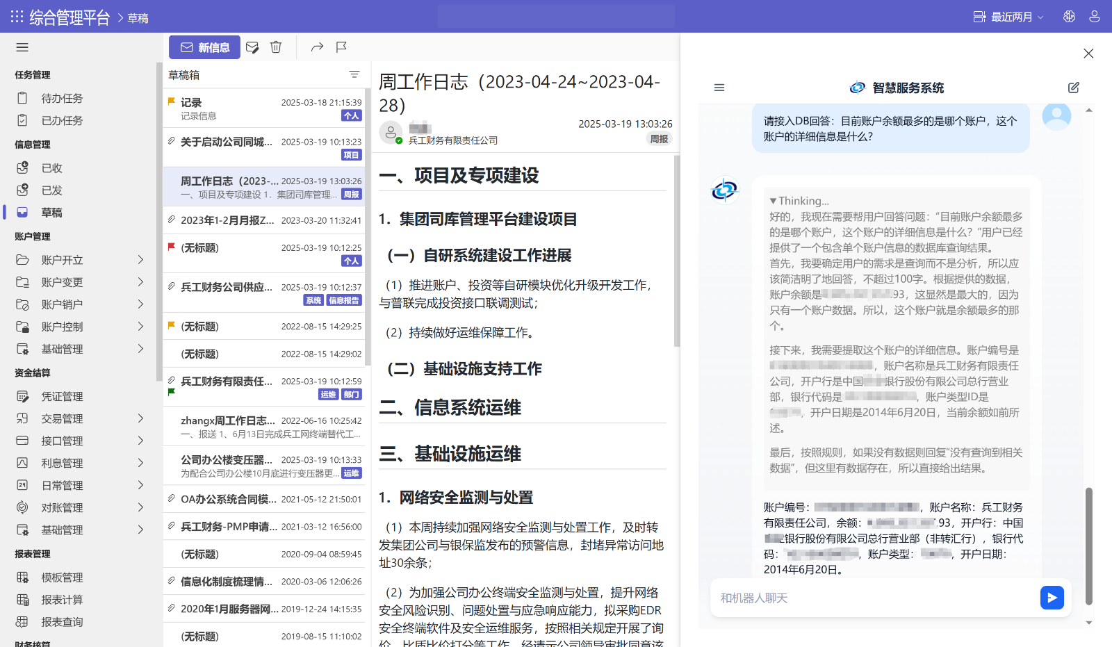 公司数字化转型升级,兵工财务公司积极开展国内领先的人工智能大模型DeepSeek技术研究,深入思考与业务