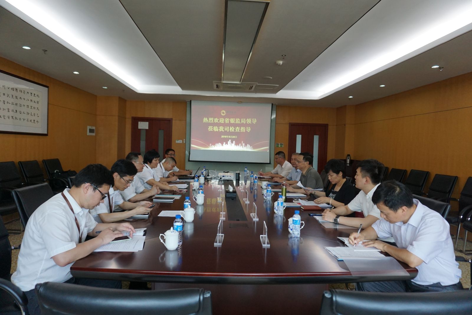 2018年5月24日,福建银监局副巡视员陈怡携非银处处长吴小芬、龙岩银监分局一行调研指导紫金财务公司。