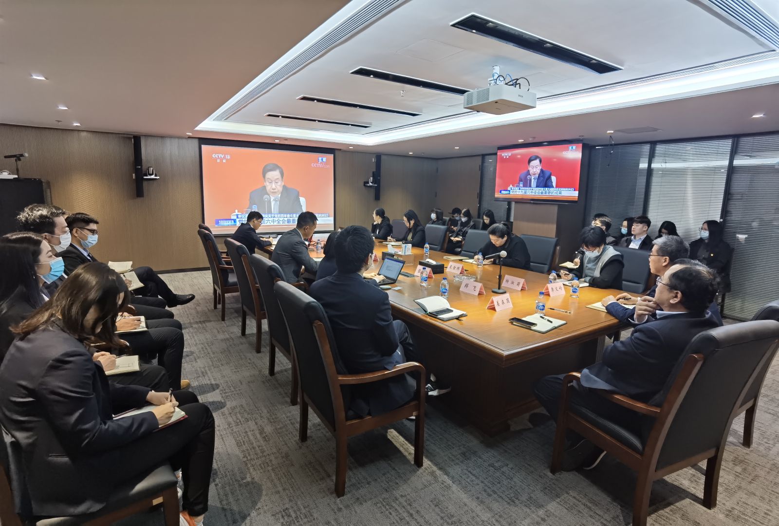 2021年11月12日上午,新兴际华集团财务公司党委组织中层以上管理人员和部分党员、群众集中收看党的十九届六中全会精神新闻发布会,同时号召全体党员认真学习、深刻领悟会议精神。基层党支部积极响应党委号召,于发布会进行时同步开启线上学习心得分享与讨论活动。党员群众围绕专家解读的全会精神,《决议》内容,结合回答媒体关切情况,分享心得,畅谈感受,充分表达了对党的百年奋斗重大成就和历史经验的高度认同,表达了对自身践行使命担当、立足岗位职责、建功新时代的愿景承诺。