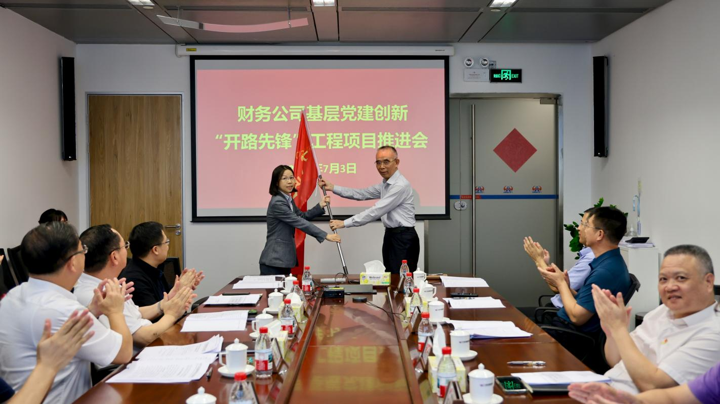 2025年7月3日下午,广东交通集团党委委员、副总经理霍燕滨率队到广东交通财务公司督导调研,听取财务公司基层党建创新“开路先锋”工程项目创建情况及深入贯彻中央八项规定精神学习教育阶段性开展情况,并为承办“开路先锋”工程项目的广东交通财务公司第二党支部授旗。