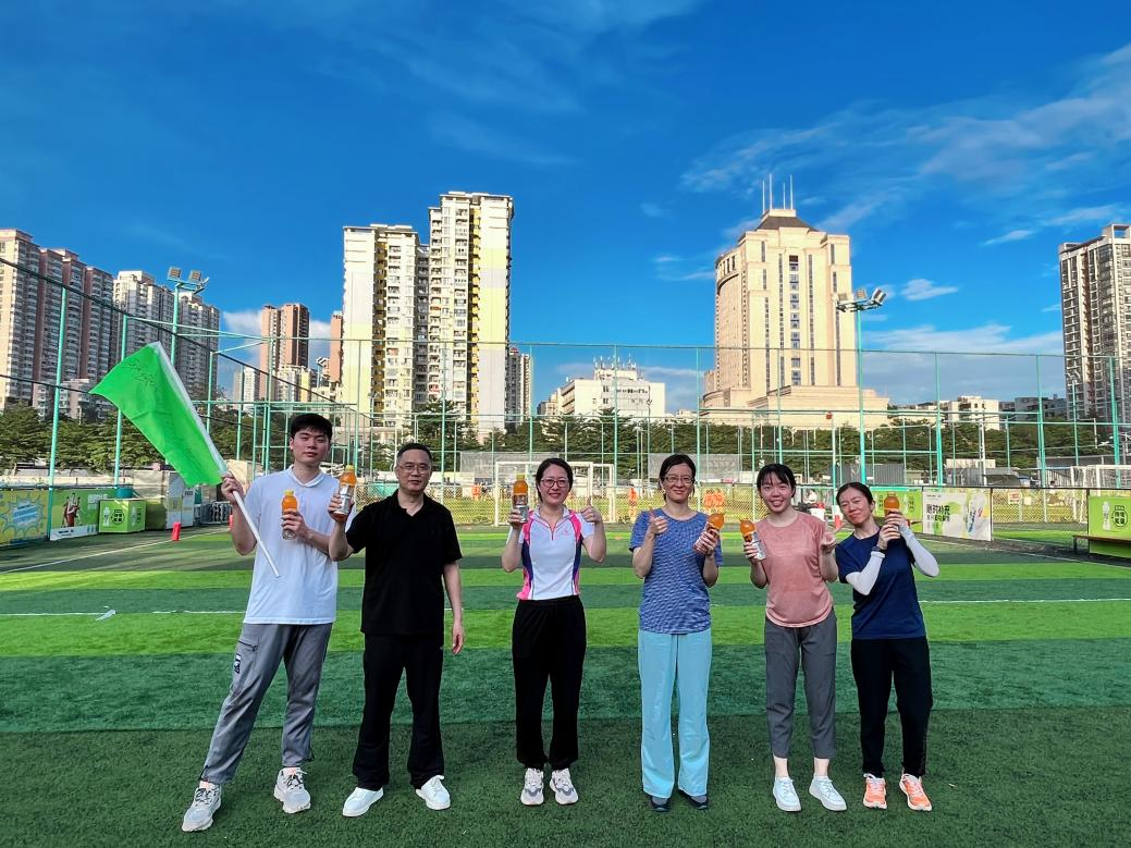 各个队伍参赛选手在足球场上奔跑、抛接、躲避、飞扑拦截......场上每位员工都坚定“盘不落地,永不放弃”的信