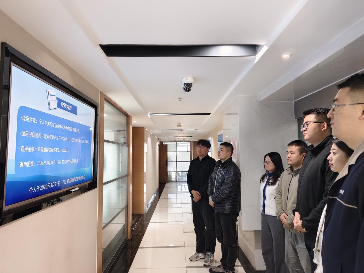 为确保宣传效果,连云港港口财务公司采取线上线下联动的方式,开展了丰富多样的宣传活动。充分利用微信公众号平台和公司营业场所多媒体设备,积极转载人民银行宣传材料,并循环播放宣传片,大力普及一次性信用修复政策,营造沉浸式宣传环境。同时组织公司职工深入学习《中国人民银行关于实施一次性信用修复政策有关安排的通知》,准确理解政策适用范围和操作要求,并主动为往来客户做好现场解读,提醒客户通过正规渠道查询信用报告、办理征信相关业务,守护好个人信用记录。