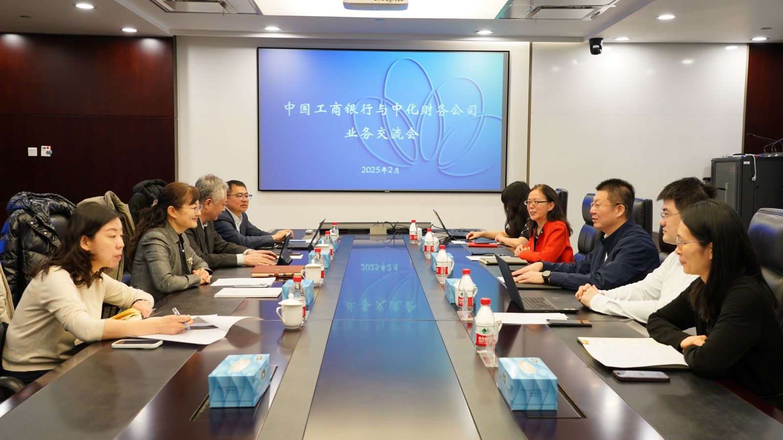 2月19日,中化财务公司党委书记、总经理夏宇与中国工商银行总行结算与现金管理部总经理郭琳一行会面,