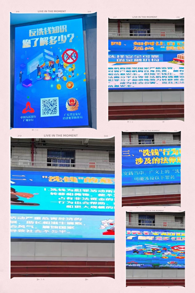 为配合开展第13个全国公安机关“5.15”打击和防范经济犯罪宣传日专题系列宣传活动,广州港集团财务有限公司积极履行反洗钱义务机构工作职责,充分发挥反洗钱宣传在维护金融安全、治理金融乱象、防范金融风险、保护老百姓“钱袋子”等方面的重要作用,与广州港技校合作开展“反洗钱知识进校园”宣传活动。活动现场,反洗钱宣传画册在学校电子公告栏、学校操场电子显示屏同时滚动播放,向广大师生普及反洗钱知识,使大家进一步了解“什么是洗钱”、“洗钱”的危害、“洗钱”行为可能涉及的法律后果及“如何让自己远离‘洗钱’风险”等知识。