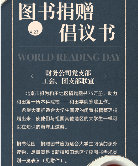 捐赠图书75万册,助力和田第一所本科院校——和田学院筹建工作。