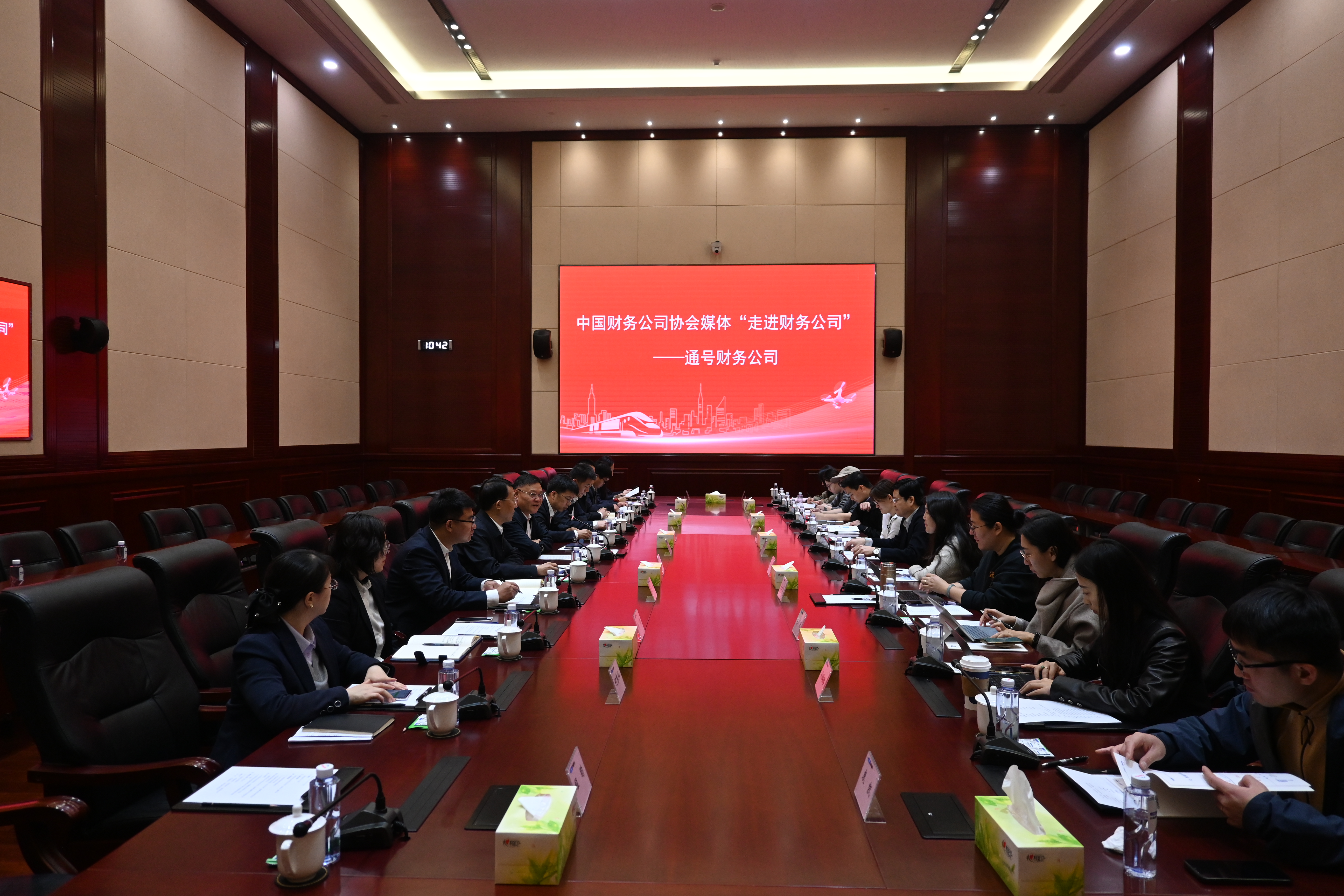 电建财务公司董事长杜明,融通财务公司总经理刘仁鹏,中国通号集团总会计师、董事会秘书李连清,通号财务公司董事长戴学兵等分别参与座谈,介绍了公司发展情况;媒体重点调研了电建财务公司绿色信贷和科创贷款、融通财务公司“融e金服”、通号财务公司服务集团“轨道交通+低空经济”等典型案例。调研期间,媒体还实地参观了中国通号C3实验室、低空经济实验室等。