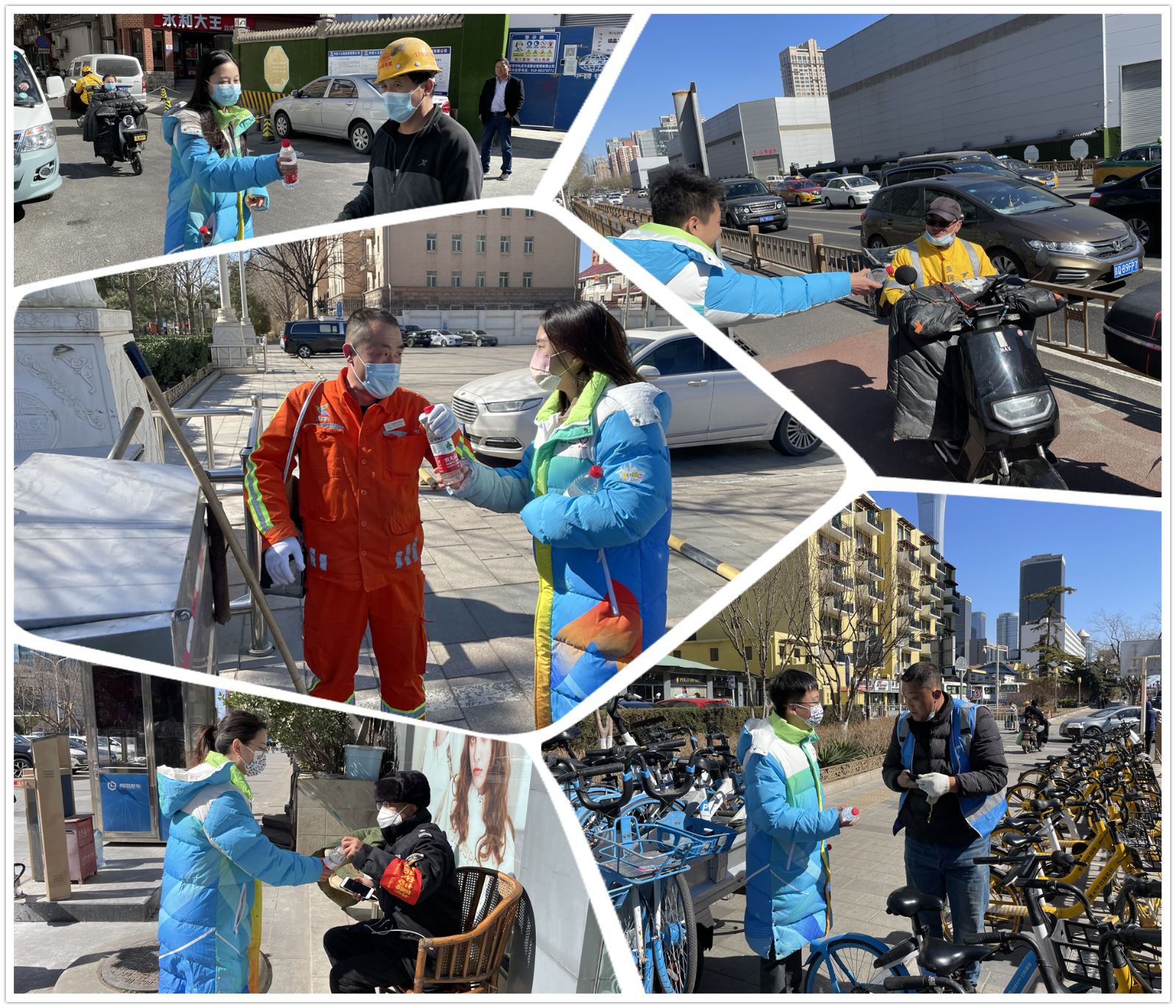 “辛苦了,喝口水吧。”“大哥,送您一瓶矿泉水,休息时记得喝一口。”志愿者们化身行走的驿站,免费为一线环卫工人、警察、综合执法人员、城市建设者、快递小哥等提供爱心物资。一瓶瓶矿泉水,一张张热情的笑脸,一声声亲切的问候,让劳动者们感受到关怀和温暖。