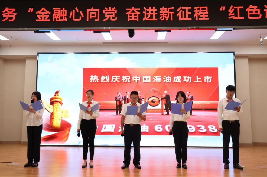 7月4日上午,海油财务举办“金融心向党,奋进新征程”诵读比赛暨先进表彰活动。14支来自各个部门的参