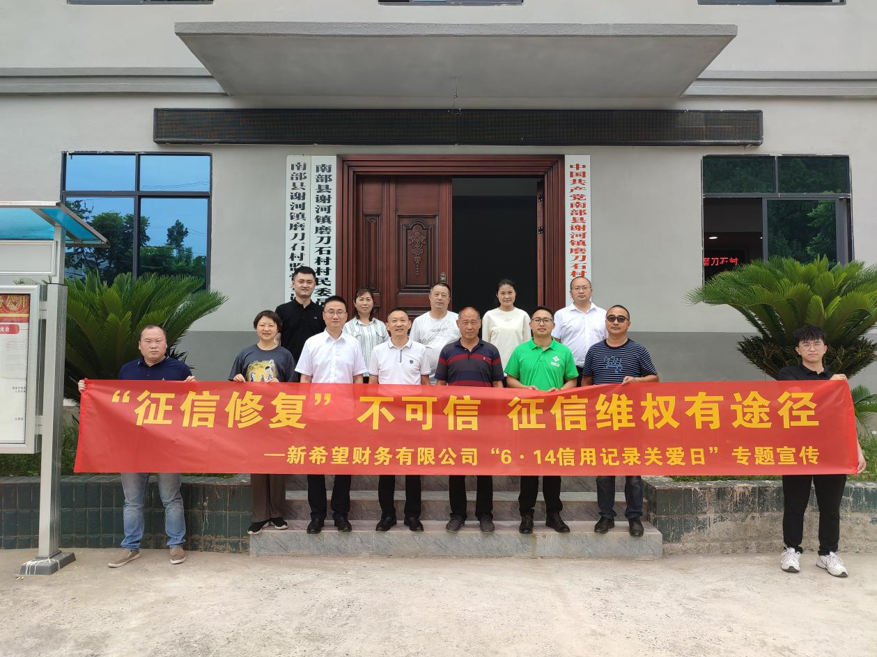 活动现场,新希望财务公司党支部与南部县谢河镇磨刀石村党支部共同举办党建共建暨“6·14信用记录关爱日”征信宣讲活动,向磨刀石村村民普及征信和信用知识,提高村民金融风险防范意识以及金融法制意识,引导村民理性借贷,合法维权。