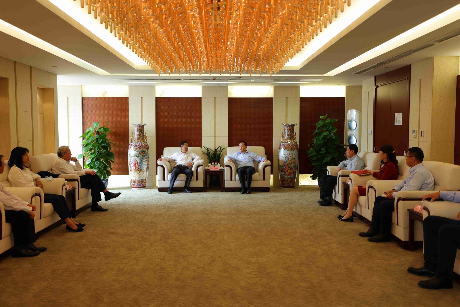 9月10日下午,电建财务公司与中国农业银行北京市分行、水电顾问公司举行党建与业务战略合作会谈。电建财务公司党委书记、董事长陈波,党委副书记、总经理沈国华,党委副书记、纪委书记杨志强,党委委员、副总经理韩磊;水电顾问公司党委书记、董事长曹春江,党委委员、副总经理、总会计师梁浩东;中国农业银行北京市分行党委书记、行长胡新智,中国农业银行总行大客户部副总裁贾涛,北京市分行党委委员、副行长洪英子等出席会议。
