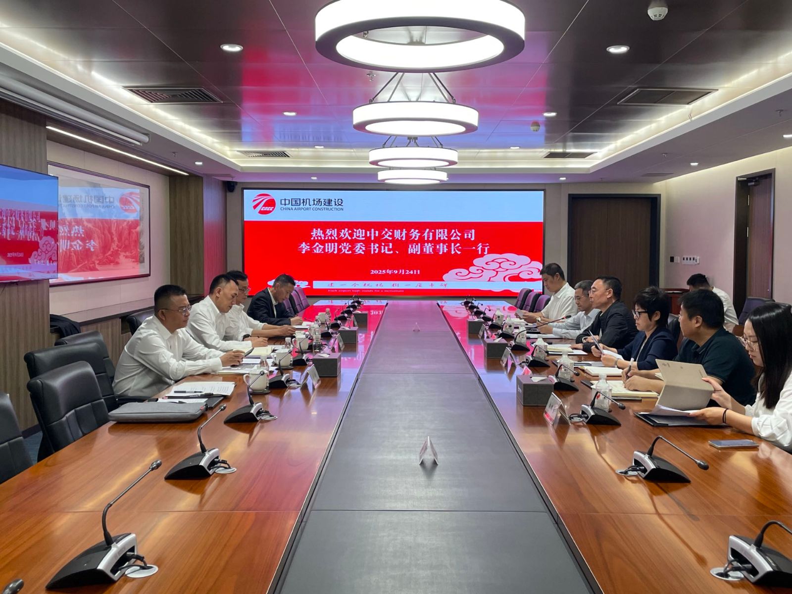 9月24日,中交财务公司党委书记、副董事长李金明率队拜访机场建设集团,与机场建设集团党委副书记、总经理宋金刚开展座谈交流。双方围绕落实集团工作部署,深化业财协同、赋能战新产业等议题进行了深入探讨。