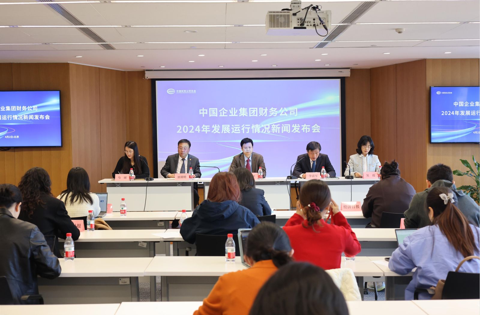 2025年4月2日,中国财务公司协会(以下简称中国财协)在京召开首次新闻发布会,介绍中国企业集团财务公司2024年发展运行情况。中国财协党委委员、专职副会长陶东平,副秘书长、新闻发言人李清军、中核财务公司副总经理田雨晴、湖北交投财务公司副总经理吴霞,及人民日报、新华社、经济日报、证券日报等14家媒体参加会议。
