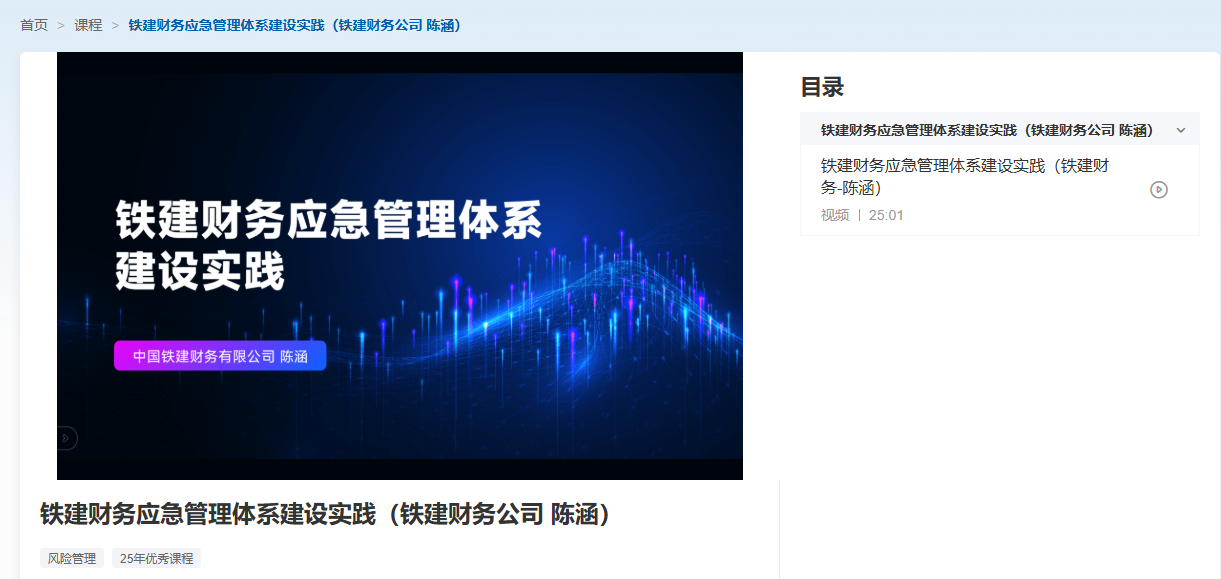课程名称:《铁建财务应急管理体系建设实践》