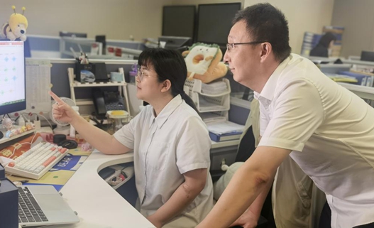 陈涛是信息技术部张明琪入职以来的“师傅”,他的教育格言是:“老带新薪火相传、师带徒赋能提效、打通成