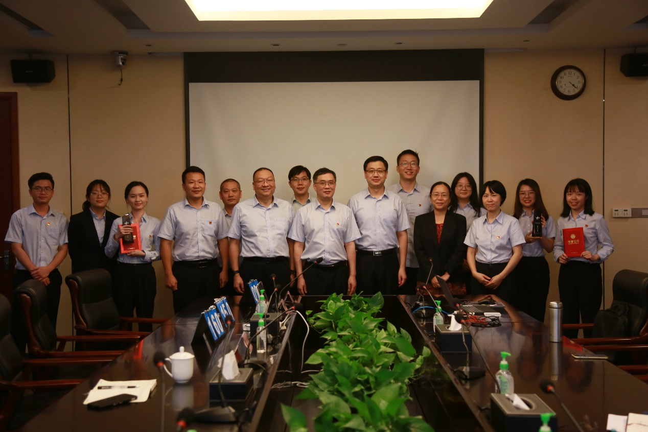 活动首先进行了“第一议题”学习,全体党员、干部、职工深入学习习近平总书记在中央党校(国家行政学院)中青年干部培训班开班式上的重要讲话精神。随后,党史知识竞赛正式开始,3支队伍围绕竞赛内容,开展激烈的角逐,现场抢答器的按键声此起彼伏。参赛选手以沉着冷静的心态和团结协作的精神,于电光火石之间迅速攻克了一道又一道难题,赢得了现场观众一阵又一阵的掌声。在互动答题环节中,各队伍充分沟通、配合默契,根据自身队伍得分排名,合理选择不同分值的题型作答,致使现场得分交替攀升,气氛被推向了高潮。最后,第三队、第二队、第一队分别荣获一等奖、二等奖和三等奖,公司领导班子成员为获奖队伍颁发奖杯及荣誉证书,并与其进行合影留念。